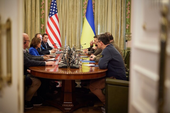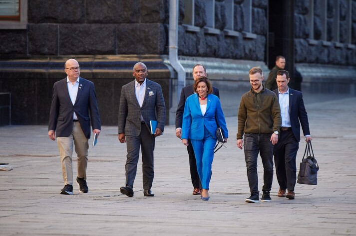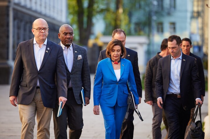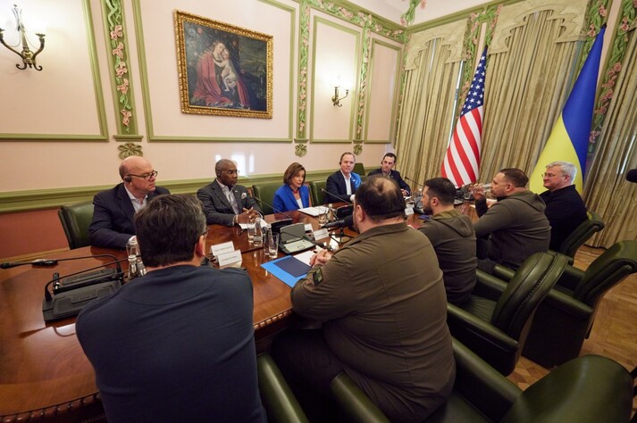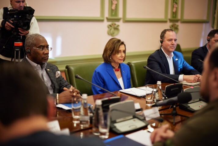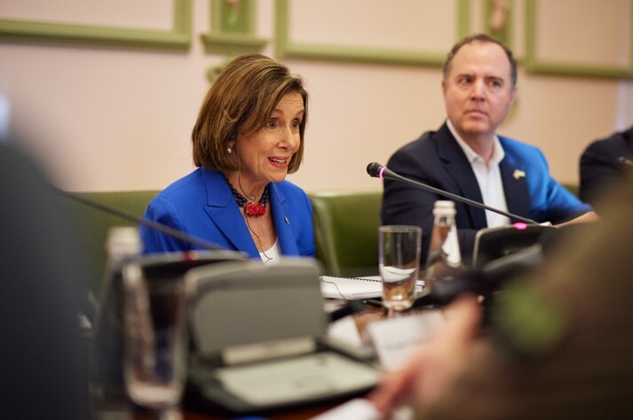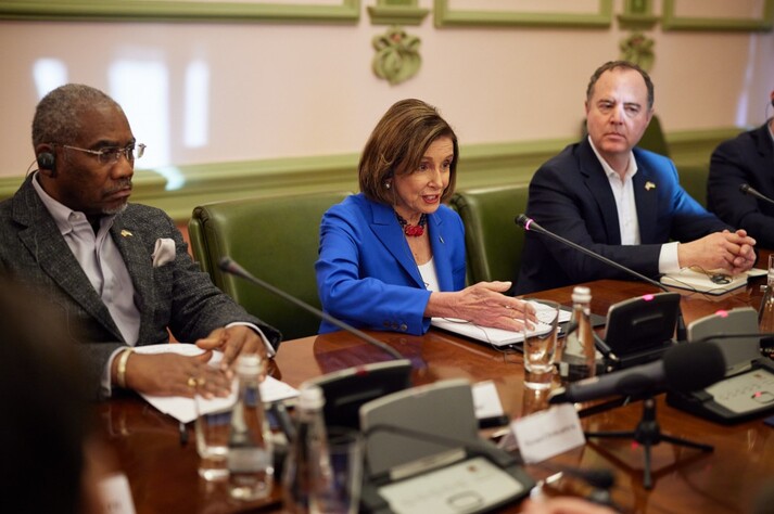 Зі свого боку спікер Палати представників передала главі Української держави вітання від Конгресу та народу Сполучених Штатів. Ненсі Пелосі зазначила, що сьогодні Україна героїчно бореться за свободу, і США готові допомагати нашій країні, доки ця боротьба не завершиться. За її словами, Україна є кордоном свободи.