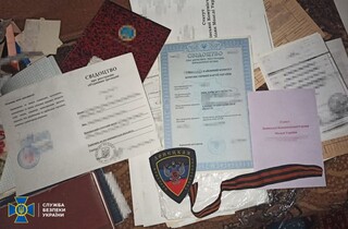 Під час обшуків у фігуранта кримінальної справи знайдено пістолет Макарова, символіку терористичної організації «днр» та забороненої в Україні комуністичної партії.
