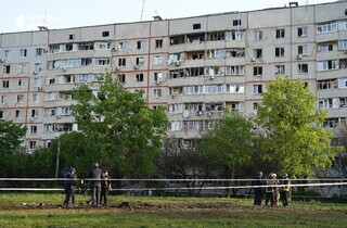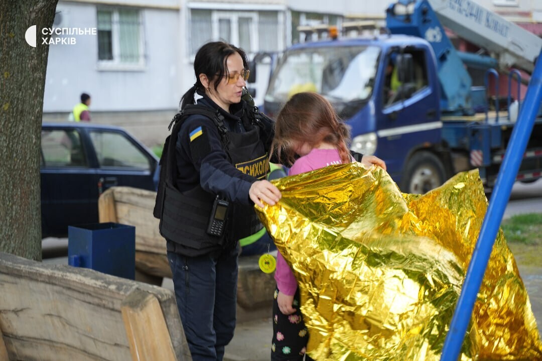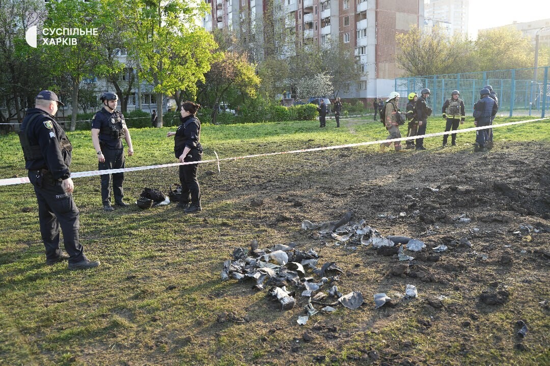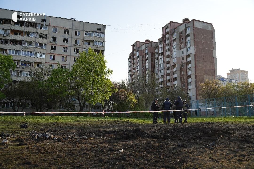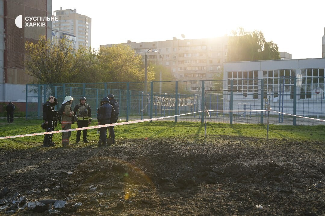 Так, жителі Немишлянського району Харкова оговтуються після ракетних ударів. Там було влучання по футбольному полю біля школи.