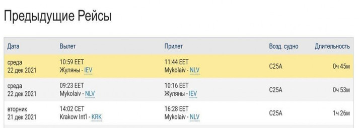 Літак Cessna 525A CitationJet CJ2 бортовий номер N125BJ вилетів із київського аеропорту «Жуляни» о 10:59 та приземлився у Миколаєві об 11:44.