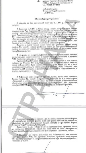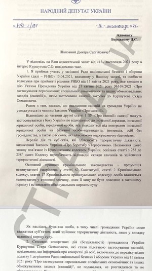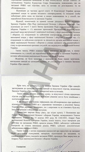 «Водночас з цим вважаю, що накладення санкцій на громадян України не узгоджується з чинним Законом України «Про санкції», – написав Разумков. Аналогічну думку у своїй відповіді на запит адвоката висловив і Арсен Аваков.