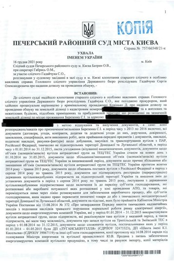 Березенко оприлюднив документи, згідно з якими ДБР проводило обшук. Це ухвала Печерського суду Києва.
