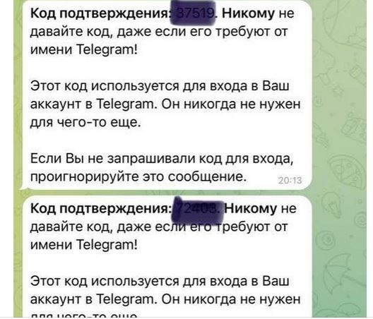 Богдан опублікував скріншот повідомлень у Telegram із кодом підтвердження для входу в обліковий запис.