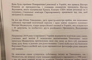 Радник голови Офісу президента подякував своєму адвокату і нагадав, що лідер партії «Батьківщина» судилася через декілька фраз в статті за 2020 рік для «Кyiv Post» під назвою «Прозахідна Тимошенко стає на бік проросійських агентів в Україні». Рішенням Подільського районного суду міста Києва під головуванням судді Світлани Захарчук у задоволенні позову Юлії Тимошенко відмовлено повністю.