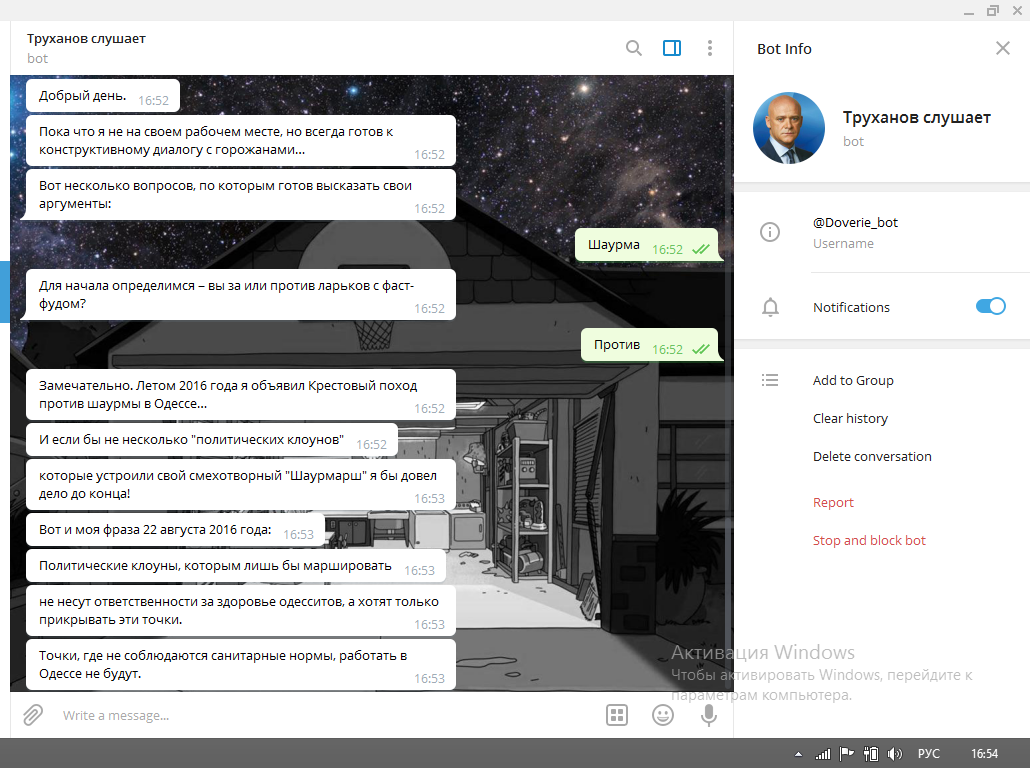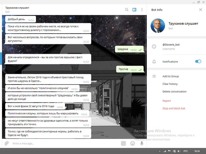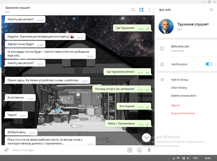 В Одесі створили Telegram-бота під назвою «Труханов слушает» після того, як мер Одеси Геннадій Труханов декілька разів відкладав своє повернення з відпустки — на робочому місці очільника Одеси немає вже більше місяця.
