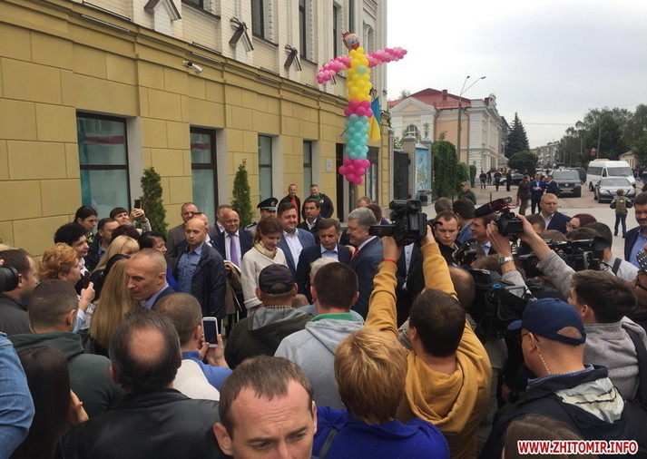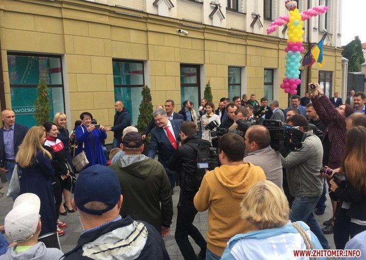 У суботу, 8 вересня, до Житомира завітав президент України Петро Порошенко. Гарант конституції приїхав до обласного центру близько 11:00. Станом на 11:02 він прогулюється Михайлівською та вітає житомирян з Днем міста. Разом з президентом до Житомира приїхала і його дружина, Марина Порошенко, пише Житомир.info.