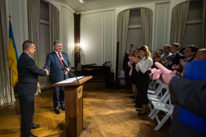 «День народження зазвичай зустрічають у компанії дуже близьких друзів. Хочу сказати, що мені надзвичайно комфортно зустрічати мій День народження у компанії таких моїх друзів», - звернувся Петро Порошенко до представників української громади.