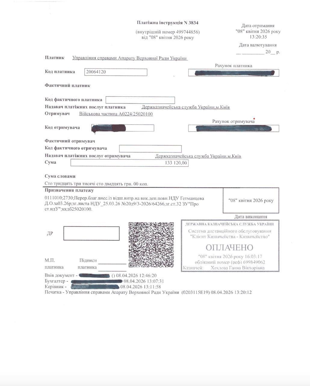 «До речі, сума, яку (безсумнівно з огидою) депутатське МФО Діми отримає за січень-квітень 2026 року і на отримання якої він так красномовно не погоджувався, впирався і заперечував, становить вже 8,4 млн грн. Зараз трибун про це мовчить, як набравши води у хом’ячі щічки», – підсумував нардеп.
