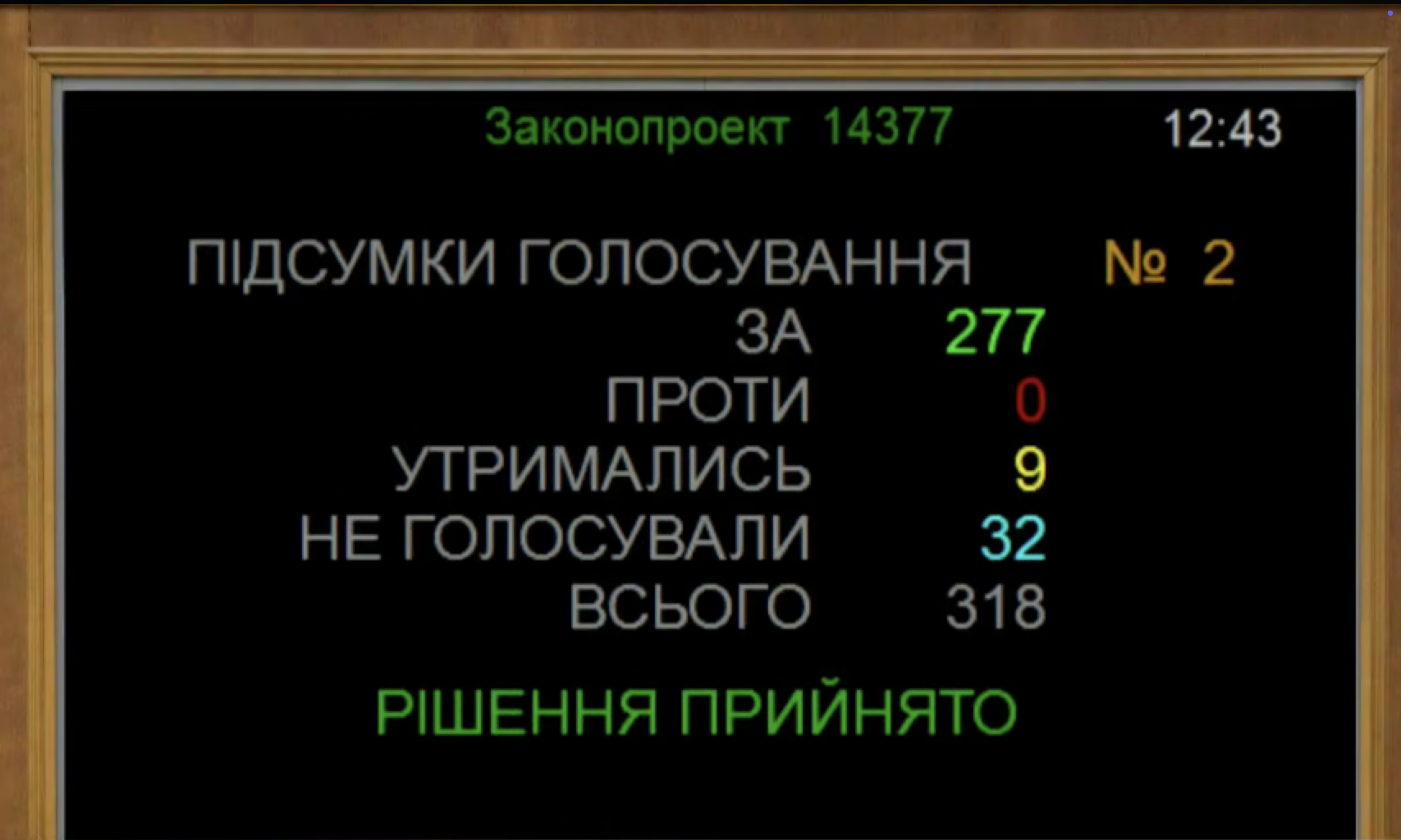 Відповідне рішення ухвалили 277 парламентарів