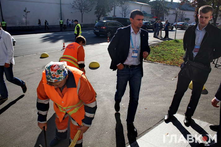 Біля 10 ранку до Мистецького арсеналу під’їхав і кортеж президента. Перед цим охорона попросила представників преси або зайти в приміщення, або залишити територію.