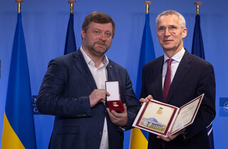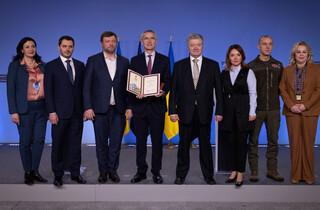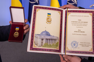 «Генеральний секретар Єнс Столтенберг прийняв Почесну нагороду Верховної Ради, однопалатного Парламенту України, на церемонії, що відбулася в понеділок, 23 січня, у штаб-квартирі НАТО. Почесна нагорода є найвищою нагородою, яка надається Верховною Радою за «видатний внесок у всі сфери життя, соціально-політичну діяльність та заслуги перед народом України у розвитку та у зміцненні України як демократичної, соціальної, правової держави», - йдеться у повідомленні.