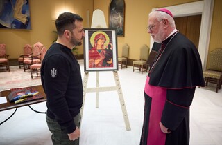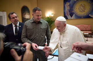 Зі свого боку, український президент привіз Папі ікону Мадонни, намальовану на пластині бронежилета.