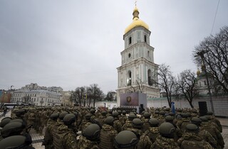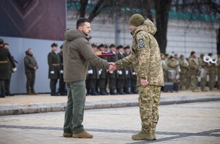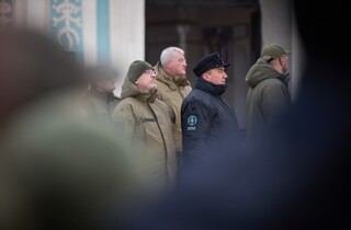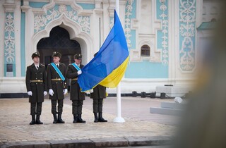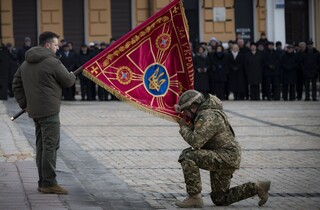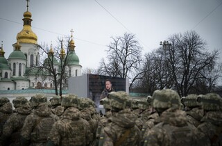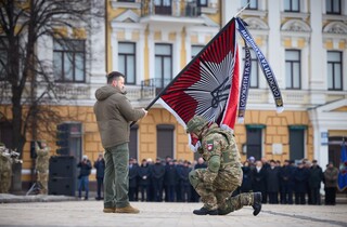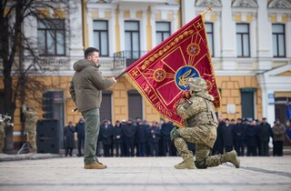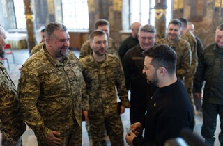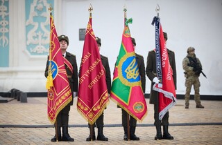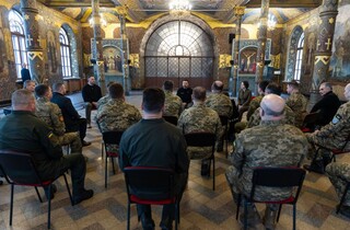 Перед цим він провів церемонію на Софійській площі: вручив бойові прапори військовим частинам та нагороди військовослужбовцям. Далі зустрівся з капеланами у Києво-Печерській лаврі: були присутні військові представники усіх конфесій, які направили своїх представників до лав армії.