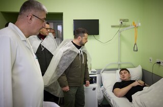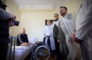 Після того президент, у компанії почесного гостя – прем’єр-міністра Польщі Матеуша Моравецького відвідав один зі столичних госпіталів, де проходять лікування поранені українські воїни. Зеленський і Моравецький побували у реанімаційному і травматологічному відділеннях, а також у залі фізичної та медичної реабілітації. Вони поспілкувалися із захисниками та побажали їм якнайшвидшого одужання.
