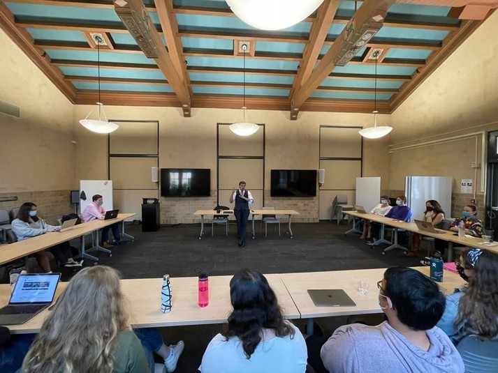 Експрем’єр-міністр України Олексій Гончарук почав розповідати студентам Стенфордського університету про важливу роль України в становленні демократії у світі. Про це експрем’єр повідомив у Facebook.