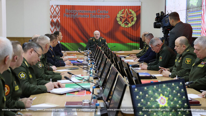 Самопроголошений президент Білорусії Олександр Лукашенко з'явився на сьогоднішній нараді в міністерстві оборони країни у військовій формі з нестандартними погонами – на них були відсутні зірки, які за статутом збройних сил Білорусі визначають військове звання, однак було розміщено державні герби Білорусі. Відеозапис із наради у міністерстві опубліковано білоруським провладним Telegram-каналом «Пул Першого».