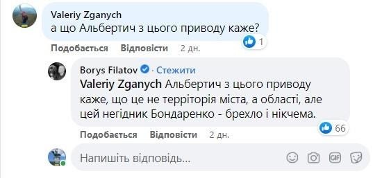 Долучився до обговорення результатів роботи колишнього очільника Дніпропетровської ОДА і чинний мер Дніпра Борис Філатов. Він назвав Бондаренка «брехлом і нікчемою».
