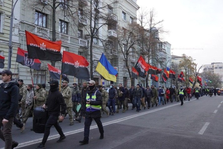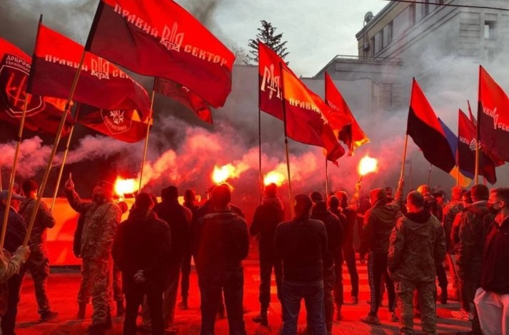 Представники націоналістичних організацій прийшли до офісу Володимира Зеленського з вимогою зупинити повзучу окупацію та взяти під контроль розслідування резонансного убивства активіста «Правого сектору» Олександра Іваніни, яке сталось 27-го жовтня в Сумах. В акції взяли участь представники «Правого сектору», ВО «Свобода», С14, Конгресу українських націоналістів, батальйону «ОУН», повідомляє видання «Уніан»