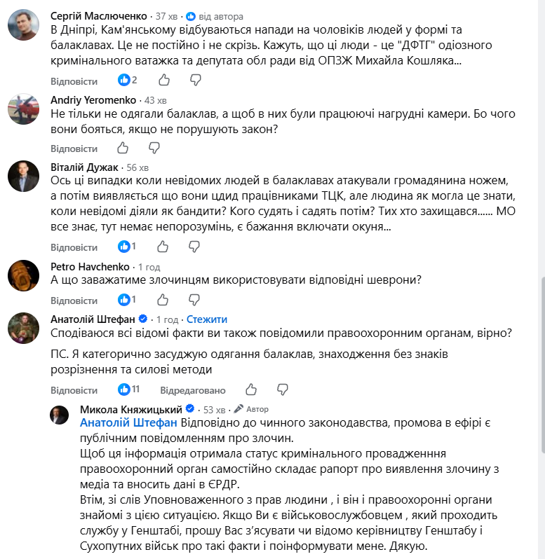Заяви народного депутата викликали активну реакцію в соцмережах. Користувачі в коментарях обговорюють можливі випадки перевдягання у форму ТЦК.