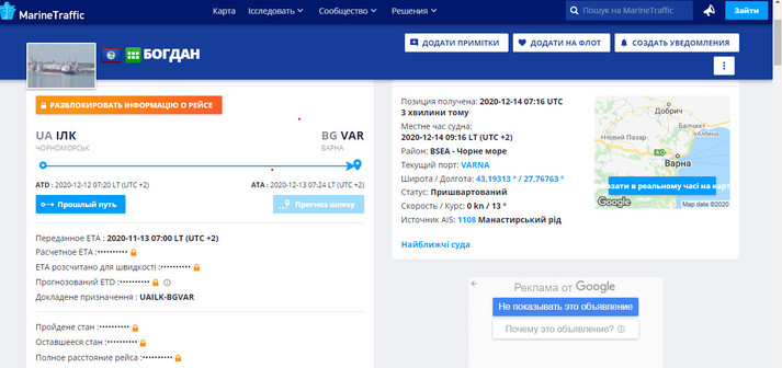 BOGDAN заявив портом призначення турецький Самсун, але насправді попрямував у болгарську Варну, в чому легко переконатися за допомогою відповідних онлайн-сервісів, що надають інформацію про місцеперебування цивільних суден. У Болгарії на нього чекає інший суховантаж – SOURIA. Руду перенавантажуватимуть на його борт, після чого SOURIA вирушить до берегів Криму.