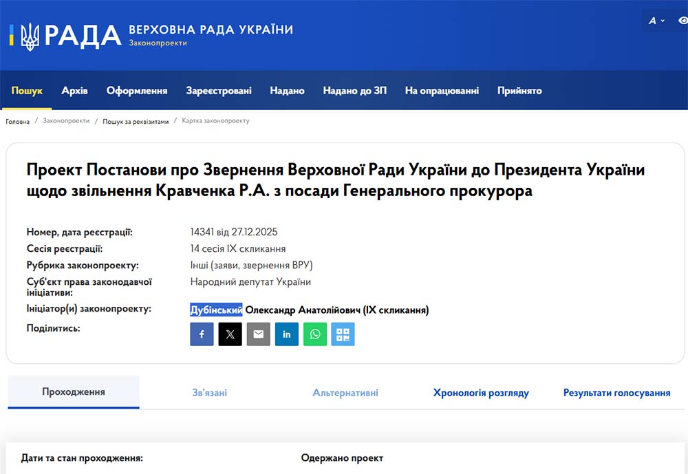 Станом на ранок 28 грудня, на сайті Ради відсутні повні тексти перелічених проєктів постанов Дубінського.
