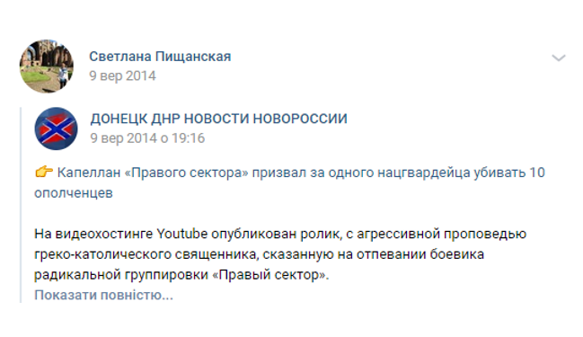 Що цікаво, що у російській мережі «Вконтакте» є профіль особи з таким же ім’ям, віком, зовнішністю і навіть місцем роботи – компанія «Метсо». І там Світлана Піщанська підписана на сторінки проросійського бойовика Ігоря Стрєлкова, російського патріарха Кирила, російського актора Івана Охлобистіна, який підтримав війну Росії проти України, проросійського провокатора і пропагандиста Грема Філіпса. Там користувачка також репостить сторінки проросійських користувачів. При цьому серед уподобань жінки є і українська сторінка ТСН, новинної служби каналу 1+1, який має партнерські стосунки з Зеленським.