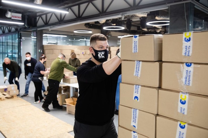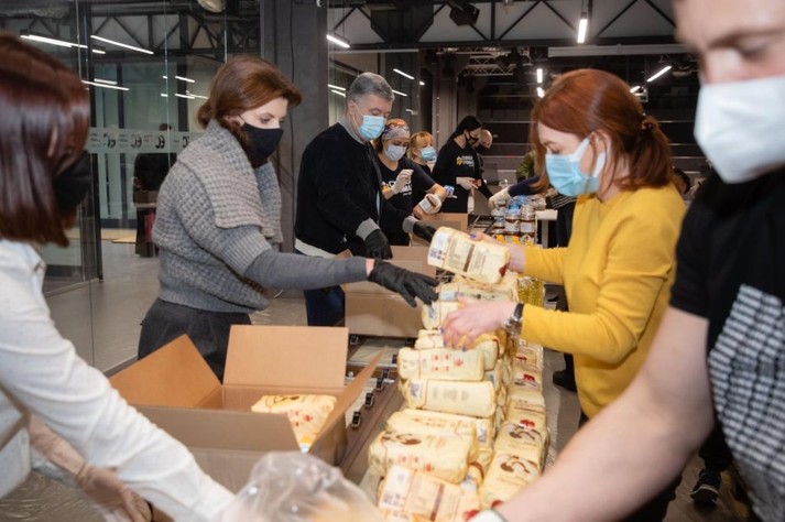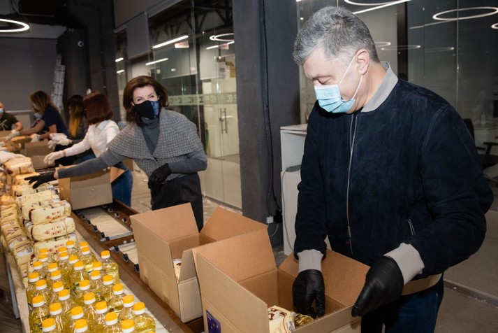 Офіс партії «Європейська Солідарність», як і рік тому, знову перетворився на живий конвеєр. Долучилися до пакування наборів і Петро та Марина Порошенки.