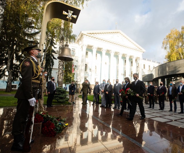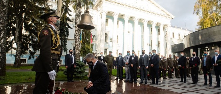 Церемонія вшанування відбулася у меморіальному комплексі «Зала пам’яті» на території Міністерства оборони України, який був відкритий 14 жовтня 2018 року. Меморіальний комплекс був створений за сприяння та ініціативи п’ятого Президента України Петра Порошенка. У меморіалі щоденно відбувається ритуал поіменного згадування воїнів Збройних сил, що загинули у день ритуалу, починаючи з 1992 року у боях за Україну або у миротворчих місіях. Після кожного прізвища лунає дзвін пам’яті.