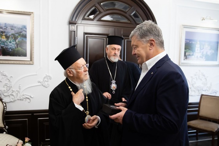 «Щойно відбулася зустріч з Вселенським Патріархом, з Його Блаженством Митрополитом Епіфанієм, Предстоятелем Православної Церкви України», – повідомив Порошенко журналістам.