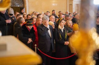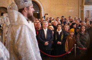 Богослужіння, на яке прийшло подружя, очолив предстоятель ПЦУ митрополит Епіфаній. Порошенко розповів, що віряни помолилися за невинних жертв російської агресії, за перемогу України і за українське військо.