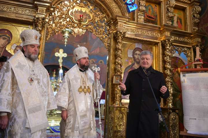«Але якщо схоче хтось зберегти ... єдність із московською церквою, це його вибір. І чи він собі зможе пояснити, чому він хоче в московську церкву, коли Москва вбиває українців, нема проблем. І я, як президент, як гарант Конституції, буду захищати їх вибір, але я так само, і я , і вся наша команда, будуть захищати вибір тих, хто прийняв рішення приєднатися до нової Помісної Автокефальної Православної української церкви», - сказав Порошенко.