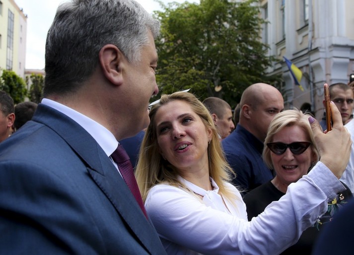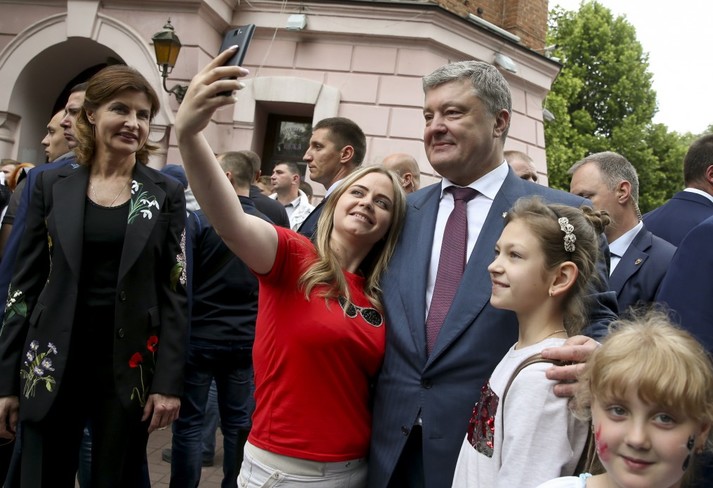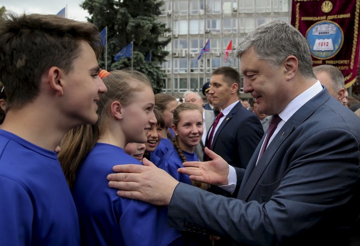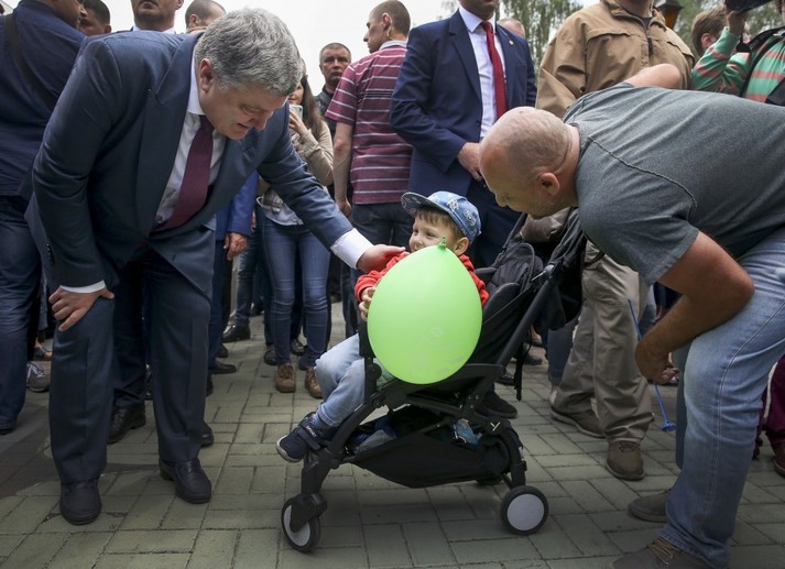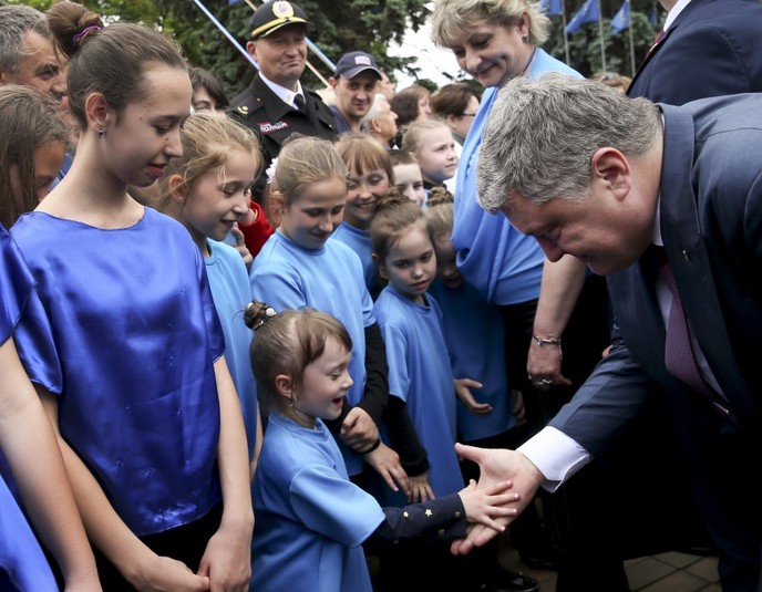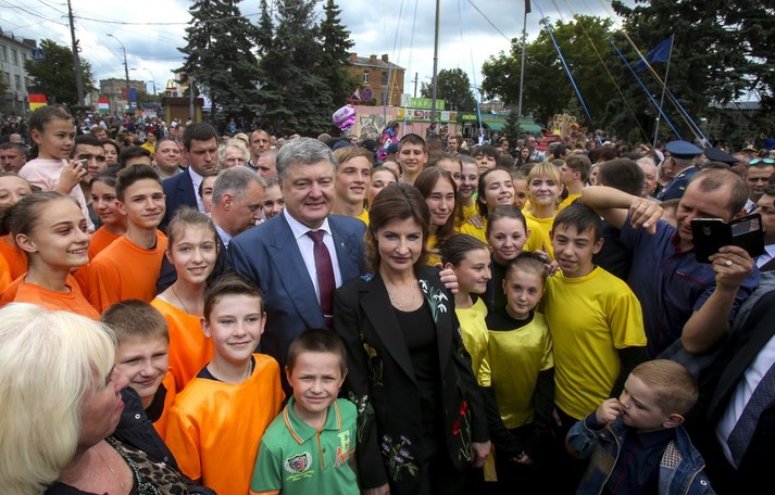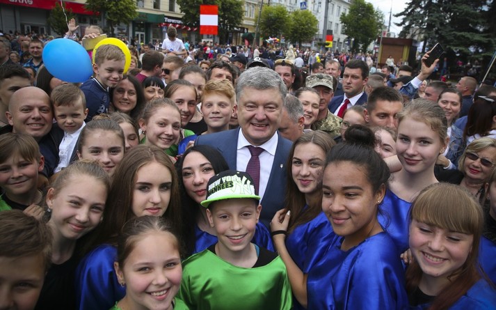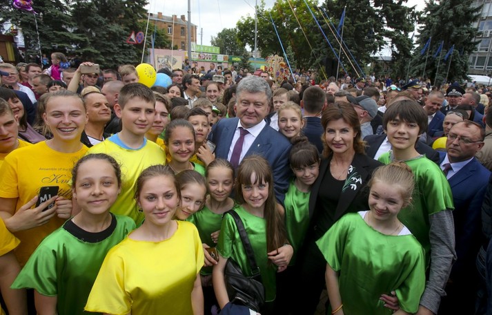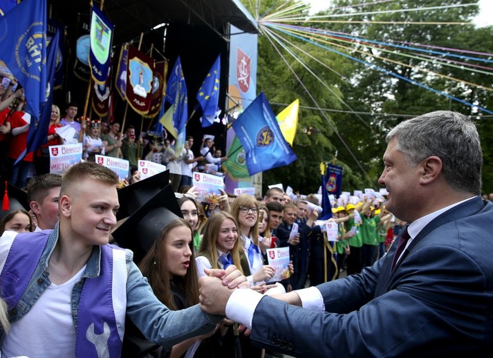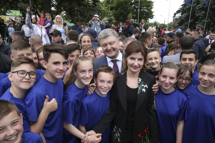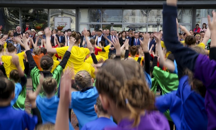 До початку урочистої церемонії Порошенко разом із дружиною Мариною пройшовся центральною площею Вінниці. Петро та Марина Порошенки вітали містян зі святом та фотографувалися з ними, а також із дітьми-учасниками флешмобу.