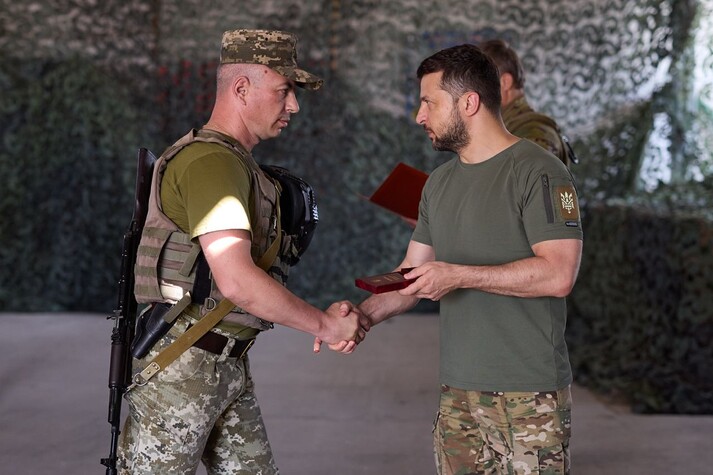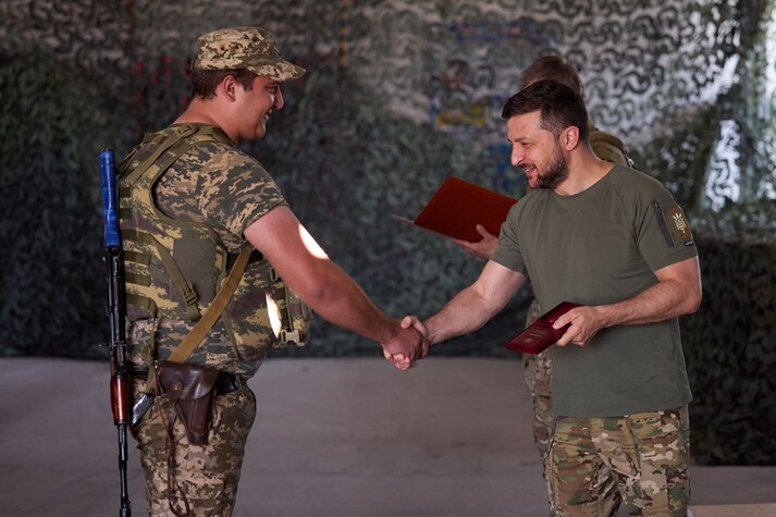 Зеленський також поспілкувався з українськими бійцями та вручив їм нагороди.