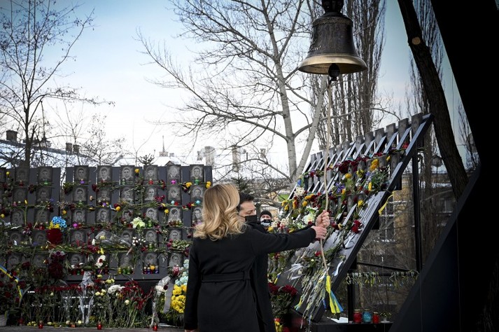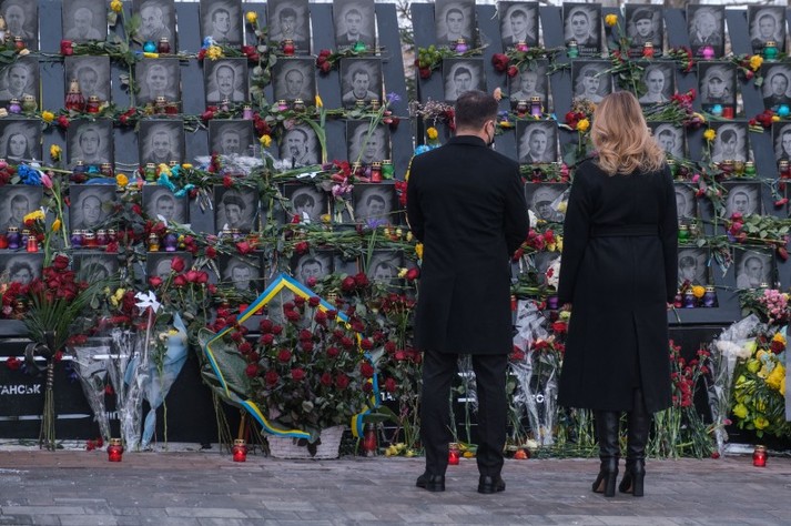 Президент Володимир Зеленський разом з дружиною Оленою у День пам’яті Героїв Небесної Сотні вшанували подвиг учасників Революції гідності у Києві.