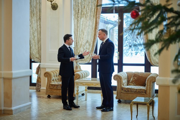 У президентській резиденції Синьогора у селі Гута Івано-Франківської області у понеділок, 20 грудня, відбуваються переговори Володимира Зеленського з президентом Польщі Анджеєм Дудою та президентом Литви Гітанасом Науседою.