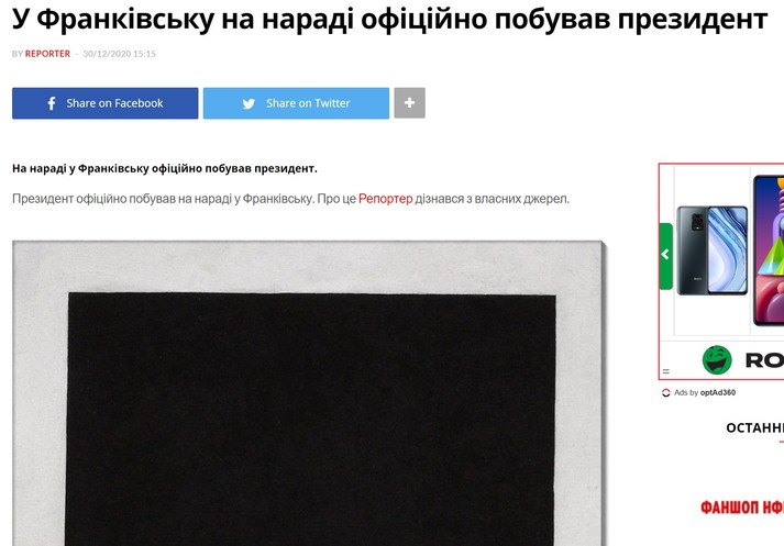 Бліц.Info опублікувало чорну картинку з написом «Тут могло бути фото президента, але ЗМІ не запросили», а Репортер запостив чорний квадрат.