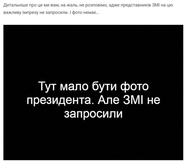«Детальніше про це ми вам, на жаль, не розповімо, адже представників ЗМІ на цю важливу імпрезу не запросили. І фото немає», - сказано в повідомленні.