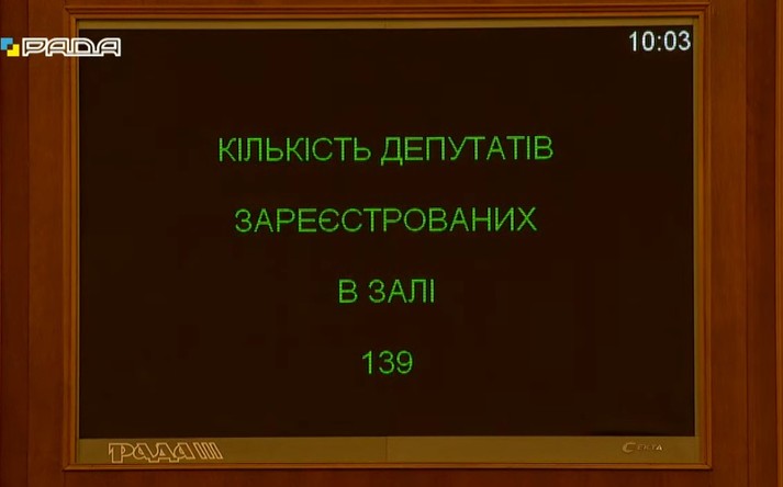 Спікер парламенту відкрив засідання, на початку якого зареєструвалося всього 139 нардепів.