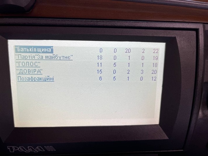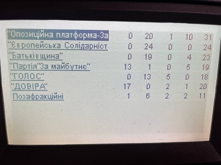 Проти виступили народні депутати від «Євросолідарності» – 23 нардепи та «ОПЗЖ» – 20.