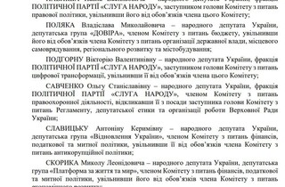 Парламентар продемонстрував списки депутатів і в які комітети вони перейшли. «На фото ви можете побачити, які депутати – в які комітети перейшли. Але що цікаво – в тому ж списку і депутати з вже забороненої ОПЗЖ. Наприклад, Скорик став членом Комітету з питань фінансів, податкової та митної політики, Чорний – членом Комітету з питань екологічної політики та природокористування. А от Рабиновича все ж таки відкликали з посади члена Комітету з питань прав людини, деокупації та реінтеграції тимчасово окупованих територій України, національних меншин і міжнаціональних відносин. Постає питання, що взагалі любителі «руського міра» роблять у Раді?», – написав Гончаренко.