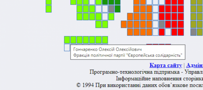 Як свідчать дані з сайту Верховної Ради про розміщення народних депутатів у залі, Гончаренко сидить з лівого краю в передостанньому ряду у найбільш дальній секції зліва від трибуни. Позаду нього – ряд вільних місць.