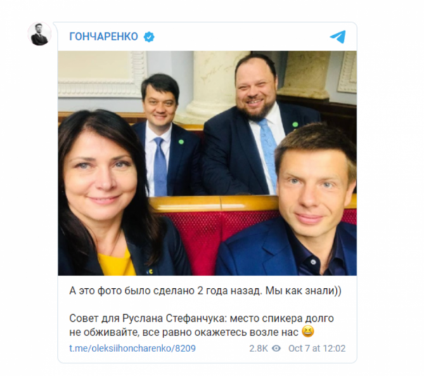 За словами Гончаренка, Разумков буде його сусідом у парламенті.