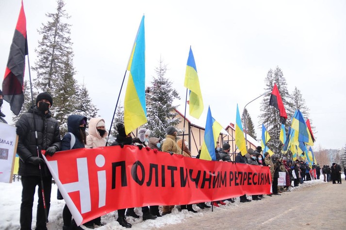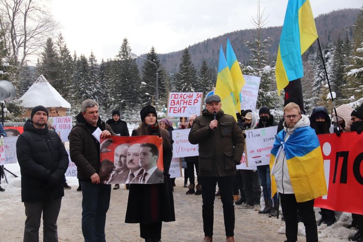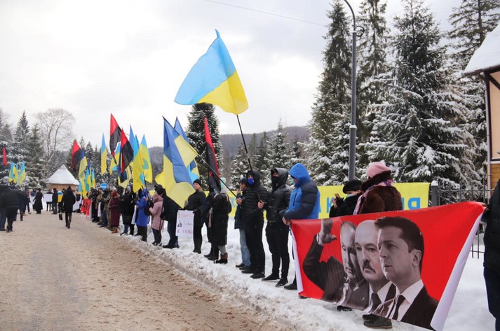 Резиденцію Зеленського на Прикарпатті оточили активісти з плакатами (фото,відео)
