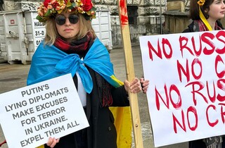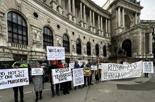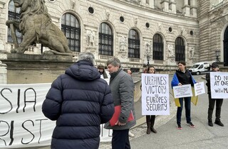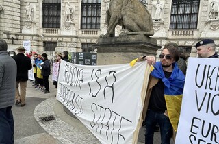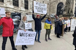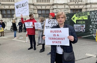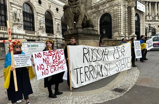 «А сьогодні разом з українською громадою вийшли на акції протесту. Поліція дуже боялася заворушень, тому дозволила тільки 20 активістам прийти з плакатами під Гофбург.