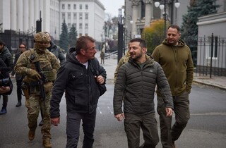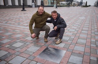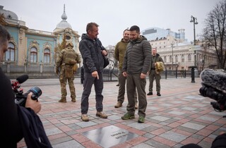 Президент і Шон Пенн також відвідали Алею сміливості на столичній площі Конституції. На цій Алеї поруч з іменами багатьох світових лідерів, які допомогли Україні під час повномасштабного вторгнення РФ, є й іменна табличка Шона Пенна.