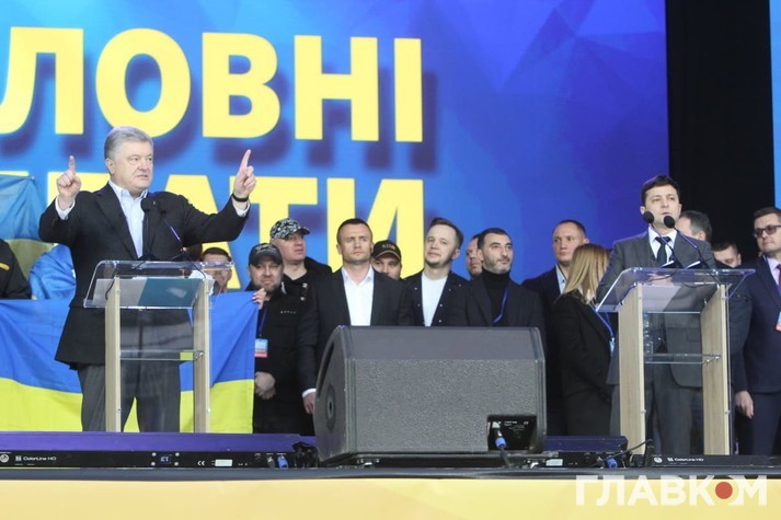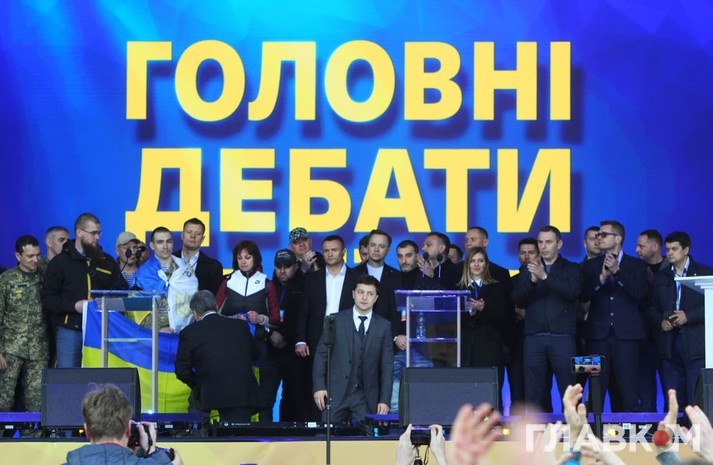 Сьогодні на НСК «Олімпійський» пройшли дебати кандидатів в президенти Петра Порошенка та Володимира Зеленського. Дебати відбулися на одній сцені, а не на двох: Петро Порошенко вирішив піти на територію свого опонента.