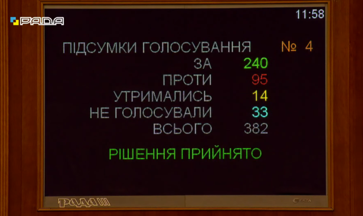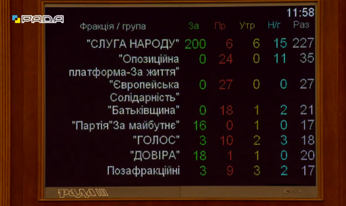 Верховна Рада відсторонила голову парламенту Дмитра Разумкова від ведення засідань на два дні. Рішення підтримали 240 народних депутатів, зокрема 200 нардепів від партії влади.