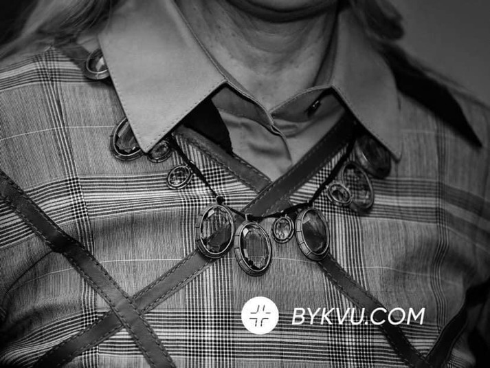 Так, Тимошенко з'явилася в стильній сукні в клітку, яку прикрашали шкіряний чорний пояс і такі ж вставки. Крім того, свій образ вона вирішила доповнити красивим кольє з великих каменів.