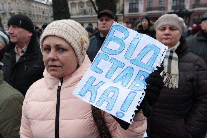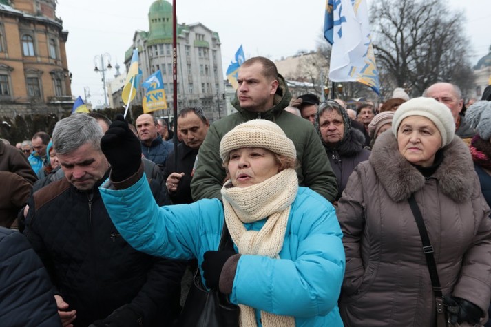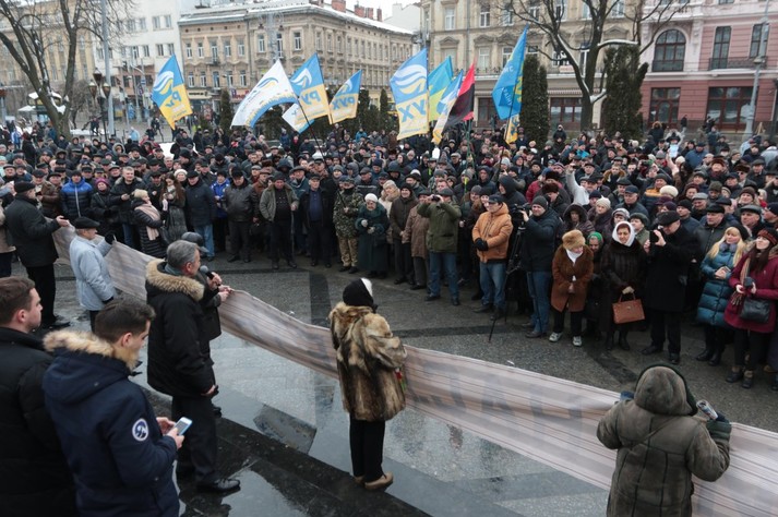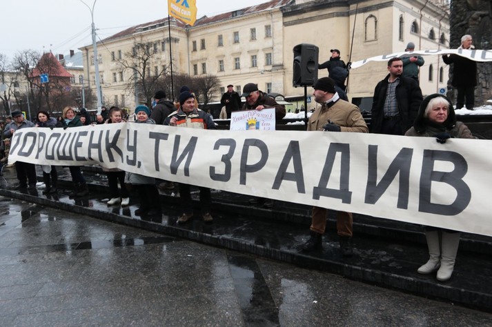 У неділю, 18 лютого, на акцію підтримки видвореного за межі України Михайла Саакашвілі у центрі Львова прийшли близько тисячі його прихильників. Усі вони висловлювали невдоволення діями президента України Петра Порошенка і вимагали відставки чинної влади.