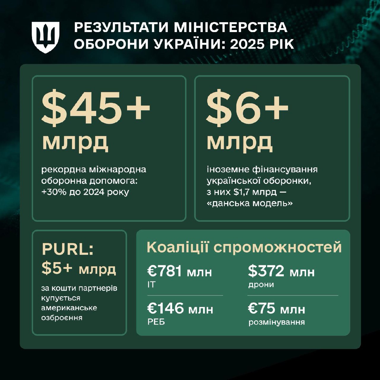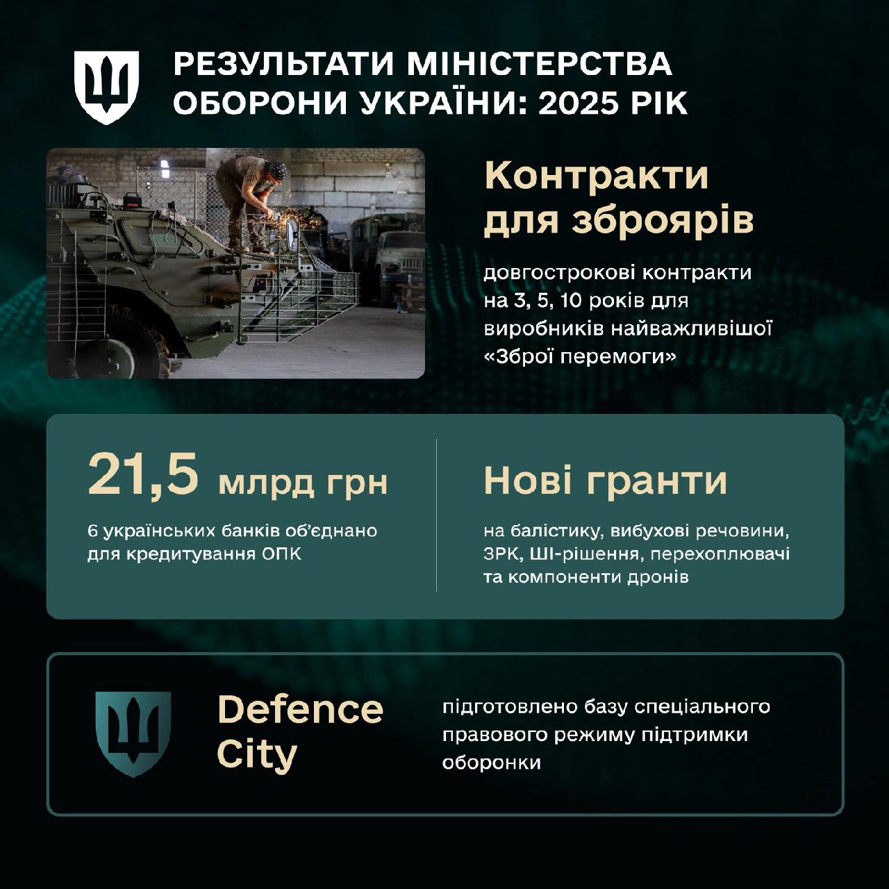 Цьогоріч вдалося запустили механізм Purl, завдяки якому Україна отримує унікальну американську зброю. Крім того, відкриваються нові підприємства в Україні та закордоном. «Завдяки залученим інвестиціям наш ОПК зростає рекордними темпами. Більше грантів, більше пільгових кредитів, більше довгих контрактів», – йдеться в заяві.